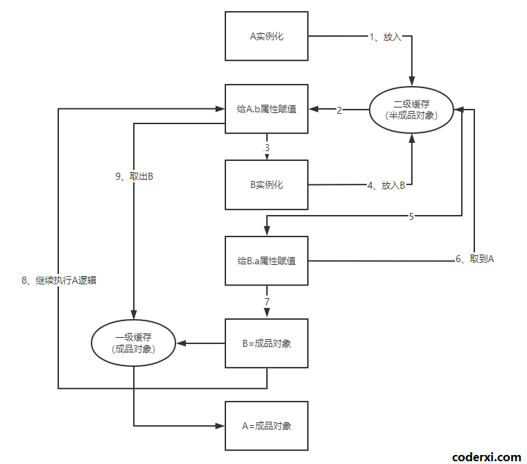 解决循环依赖的关键是将【实例化】与【初始化】两个过程分开。